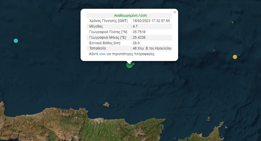 Σύμφωνα με το Ευρωπαϊκό Μεσογειακό Σεισμολογικό Κέντρο ο σεισμός στην Κρήτη είχε μέγεθος 4,8 βαθμούς της κλίμακας Ρίχτερ.