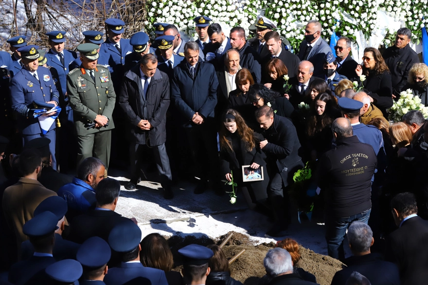 Φίλοι και συγγενείς είπαν το τελευταίο «αντίο» στον σμηναγό ενώ τραγική φιγούρα η σύντροφός του με την οποία ετοιμαζόταν να παντρευτεί.