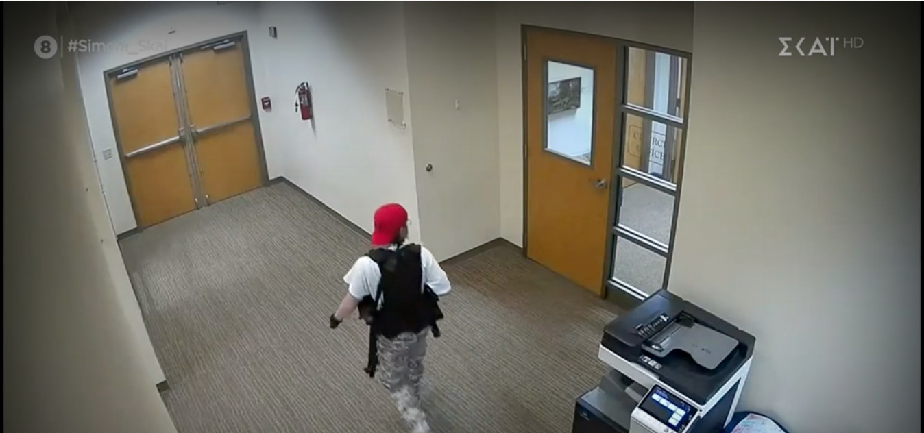 Κάμερες , εντός του σχολείου , κατέγραψαν τη νεαρή γυναίκα , με στολή παραλλαγής και ένα όπλο στο χέρι , να ανοίγει τις πόρτες αιθουσών , ψάχνοντας να σκοτώσει.