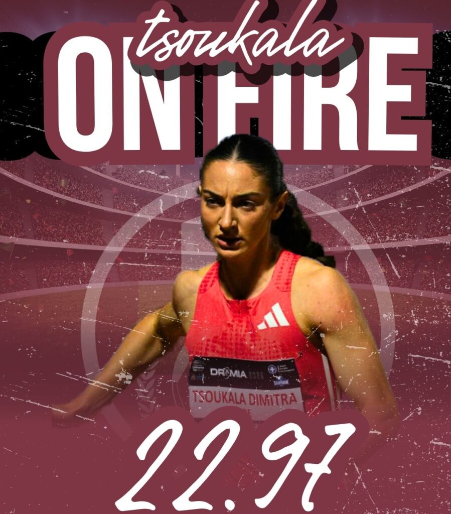 💥🏅”Εντυπωσιακή εμφάνιση πραγματοποίησε η Τσουκαλά, η οποία κέρδισε την 1η σειρά των 200 μ. με 22.97 (0,7) και ανέβηκε στη δεύτερη θέση της γενικής κατάταξης. Η επίδοσή της αποτελεί σημαντική βελτίωση σε σχέση με το 23.25 που είχε σημειώσει πριν από τρεις εβδομάδες στο Εαρινό Πρωτάθλημα στα Τρίκαλα.”