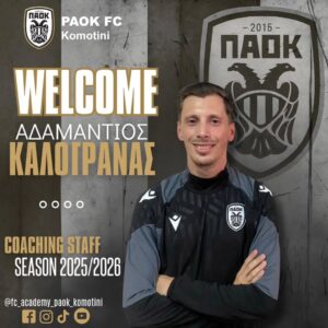 ⚫⚪FC ACADEMY PAOK KOMOTINI⚪⚫ 👉Η ακαδημία του ΠΑΟΚ Κομοτηνής με μεγάλη χαρά ανακοινώνει την επιστροφή του Αδαμάντιου Καλογρανα, ο οποίος αναλαμβάνει καθήκοντα προπονητή στα τμήματα υποδομής του συλλόγου μας, ενώ παράλληλα θα ενισχύσει και την ανδρική μας ομάδα ως ποδοσφαιριστής.