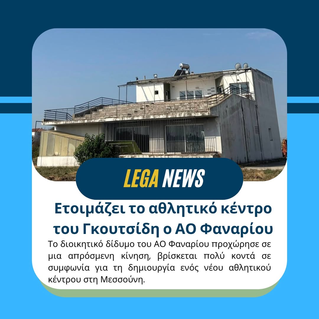🚧Ετοιμάζει το αθλητικό κέντρο του Γκουτσίδη ο ΑΟ Φαναρίου ⚽Το διοικητικό δίδυμο του ΑΟ Φαναρίου προχώρησε σε μια απρόσμενη κίνηση, βρίσκεται πολύ κοντά σε συμφωνία για τη δημιουργία ενός νέου αθλητικού κέντρου στη Μεσσούνη.