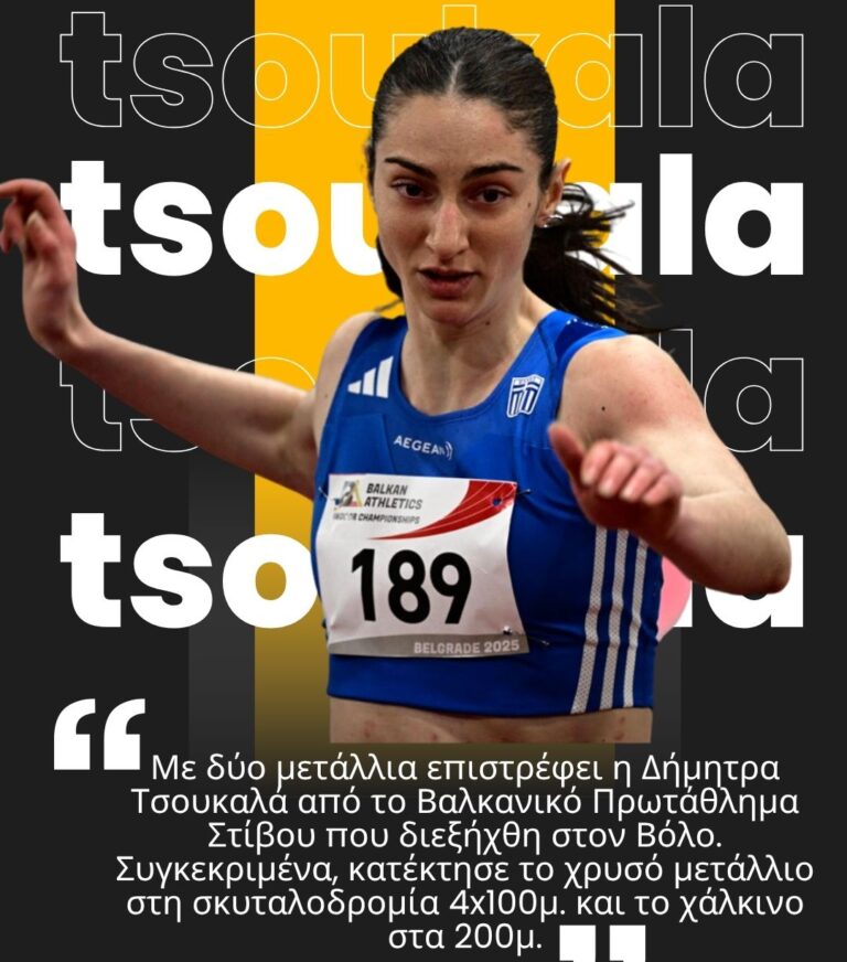 🏅🥉Στίβου που διεξήχθη στον Βόλο. Συγκεκριμένα, κατέκτησε το χρυσό μετάλλιο στη σκυταλοδρομία 4×100μ. και το χάλκινο στα 200μ. 🚀Η Δήμητρα δείχνει να βρίσκεται σε εξαιρετική αγωνιστική κατάσταση, καθώς ο χρόνος της στα 200μ. ήταν πολύ κοντά στο ατομικό της ρεκόρ. Μαζί με τον προπονητή της, Χρήστο Τσιπουρίδη, ετοιμάζονται πλέον για το Πανελλήνιο Πρωτάθλημα, το οποίο θα διεξαχθεί και αυτό στον Βόλο το προσεχές Σαββατοκύριακο. 💯Εκτός από τη Δήμητρα, ο ΠΑΣ Πρωταθλητών είχε ακόμη δύο εκπροσώπους στη διοργάνωση: την Αλεξία Παπαβασιλείου και τον Βασίλη Παπαμαργαρίτη. 💥Η Αλεξία συμμετείχε στα 400μ., όπου κατέλαβε την 5η θέση με χρόνο 55.02. Αν και δεν κατάφερε να φτάσει την κορυφαία της επίδοση, συνεχίζει την προετοιμασία της με στόχο το πανελλήνιο πρωτάθλημα, όπου αναμένεται να δείξει τις πραγματικές της δυνατότητες. 💪Ο Βασίλης Παπαμαργαρίτης συμμετείχε ως αναπληρωματικός στη σκυταλοδρομία 4×100μ., αποκομίζοντας πολύτιμες εμπειρίες. Τόσο ο ίδιος όσο και η Αλεξία στοχεύουν να ξεπεράσουν τα ατομικά τους όρια στη διοργάνωση του Σαββατοκύριακου.