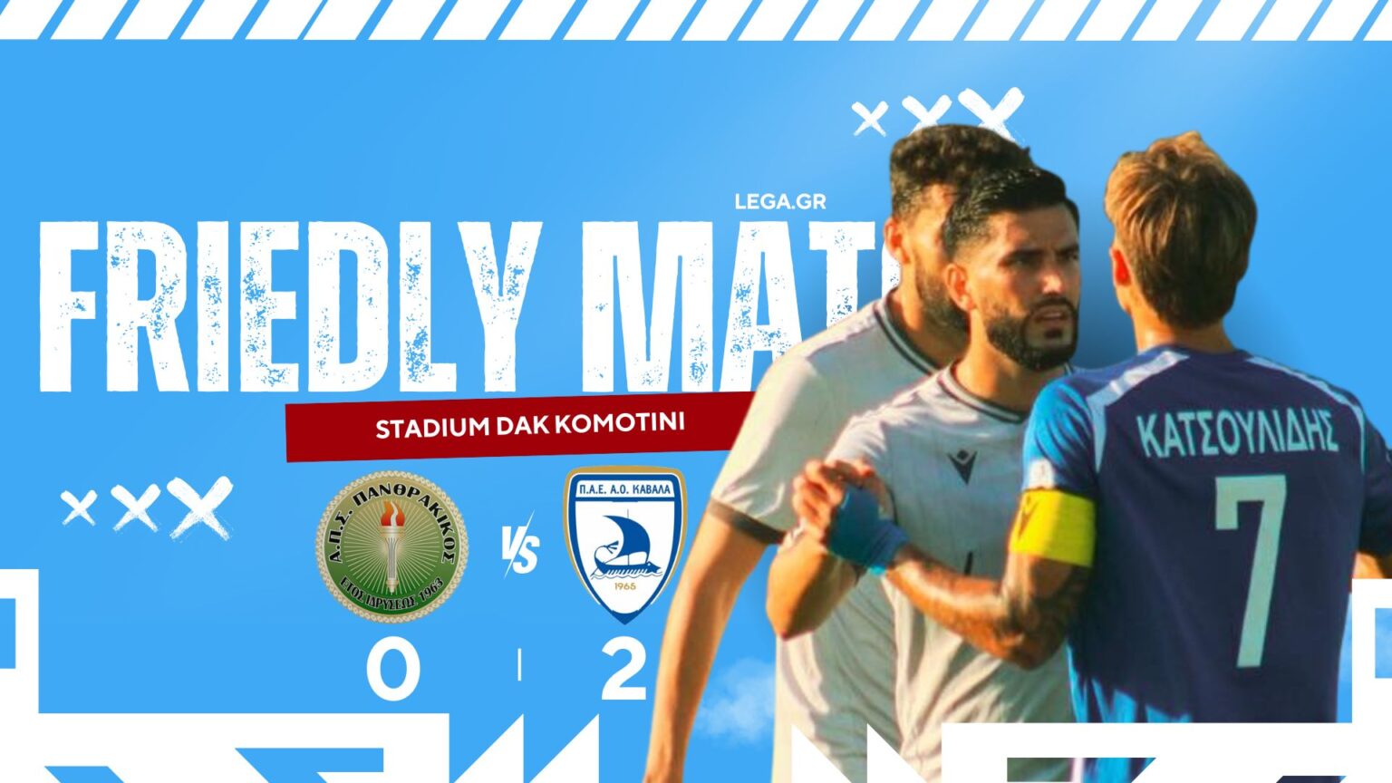 Ένα δυνατό φιλικό παιχνίδι διεξήχθη το απόγευμα του Σαββάτου στο ΔΑΚ Κομοτηνής, όπου ο Πανθρακικός υποδέχθηκε την Καβάλα, ομάδα που θα αγωνιστεί και τη νέα σεζόν στη Super League 2. Παρά τη διαφορά κατηγορίας, οι «Αργοναύτες» έδειξαν μεγαλύτερη ετοιμότητα, έχοντας ήδη δώσει επίσημο παιχνίδι για το Κύπελλο Ελλάδας.