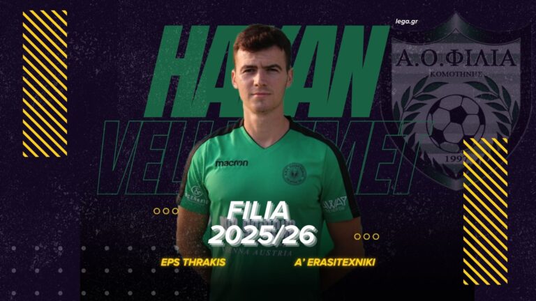 Η Φιλία Κομοτηνής προχώρησε σε μία από τις πιο ηχηρές κινήσεις του καλοκαιριού, αποκτώντας τον έμπειρο μέσο Χακάν Βελή Μεμέτ, ο οποίος θα αγωνίζεται τη φετινή σεζόν στη Μεγάλη Ερασιτεχνική Κατηγορία της ΕΠΣ Θράκης.