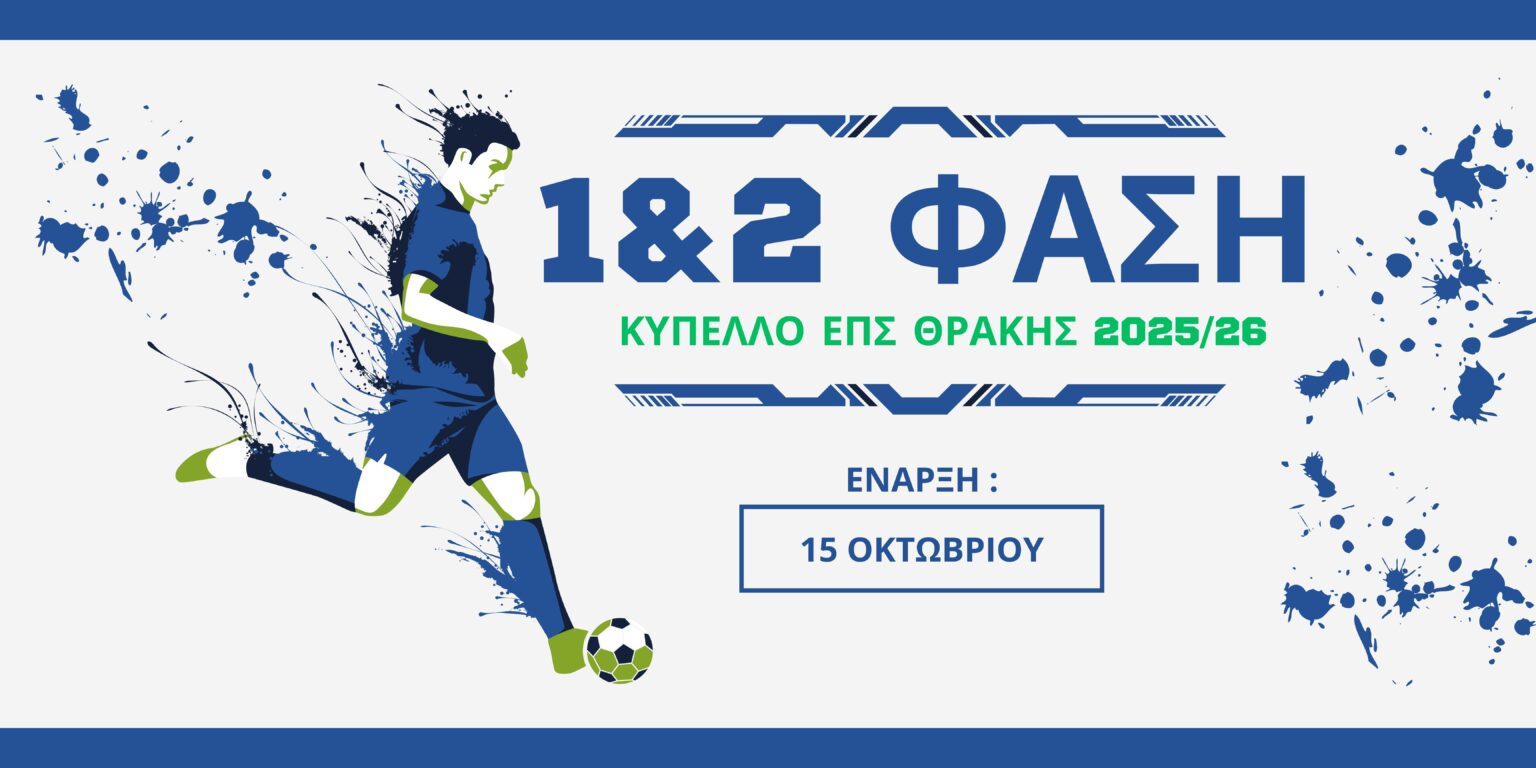 Με τη συμμετοχή 21 ομάδων και πέντε φάσεις διεξαγωγής θα πραγματοποιηθεί φέτος το Κύπελλο ΕΠΣ Θράκης, το οποίο ξεκινά την Κυριακή 15 Οκτωβρίου με πέντε αναμετρήσεις για την Α’ φάση.