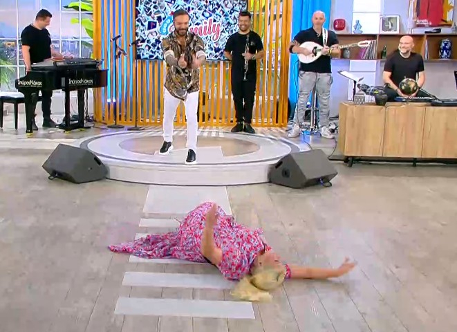 Ο τραγουδιστής μπήκε με διάπλατο χαμόγελο στο πλατό και χαιρέτησε έναν έναν όλους τους συντελεστές.