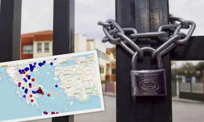 Με κόκκινο τα κλειστά σχολεία και με μπλε τα κλειστά τμήματα:
