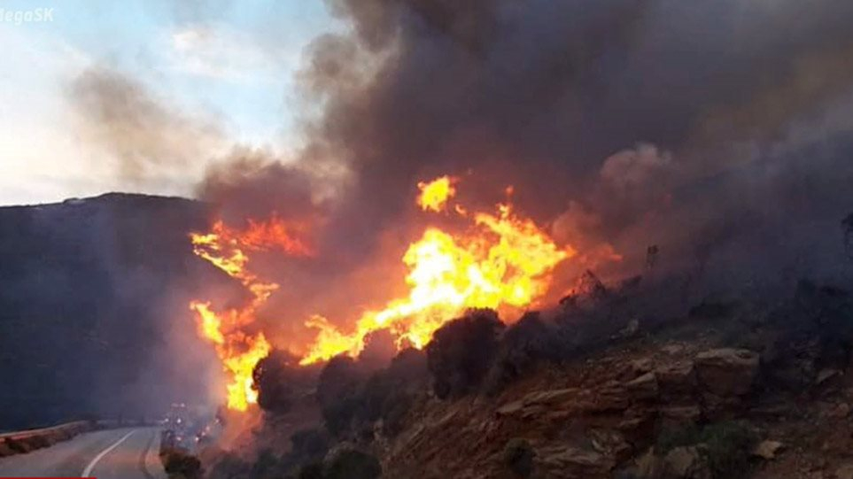 Ανεξέλεγκτη η φωτιά στην Άνδρο – Εκκενώθηκαν δυο χωριά