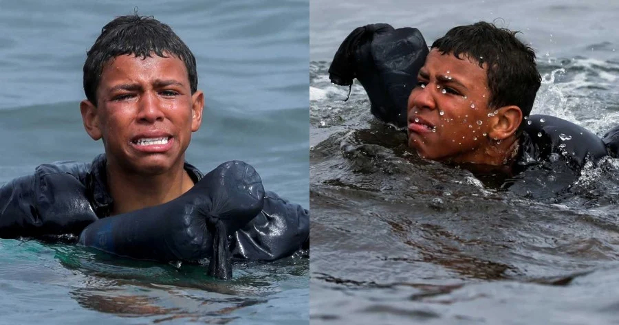 Οι διασώστες ανέσυραν δεκάδες παιδιά από τα νερά της Μεσογείου. Όπως χιλιάδες άλλοι μετανάστες, είχαν προσπαθήσει μαζί με τους γονείς τους να φτάσουν στον ισπανικό θύλακα της Θέουτα στη Βόρεια Αφρική από την μαροκινή πόλη Φνιντέκ. Με πλαστικές βάρκες ή κολυμπώντας. Οι φωτογραφίες τριών διασωθέντων παιδιών οι οποίες δημοσιεύονται στον παγκόσμιο Τύπο, δίνουν στην κρίση ένα πρόσωπο. Η μητέρα του συγκεκριμένου μωρού είχε πηδήξει στη θάλασσα έχοντάς το στην πλάτη της για να φτάσει στην στεριά. Το παιδί όμως έπεσε στο νερό, αναφέρει η «Guardia Civil». Το μικρό αγόρι τελικά σώθηκε από τον αστυνομικό και επέζησε.