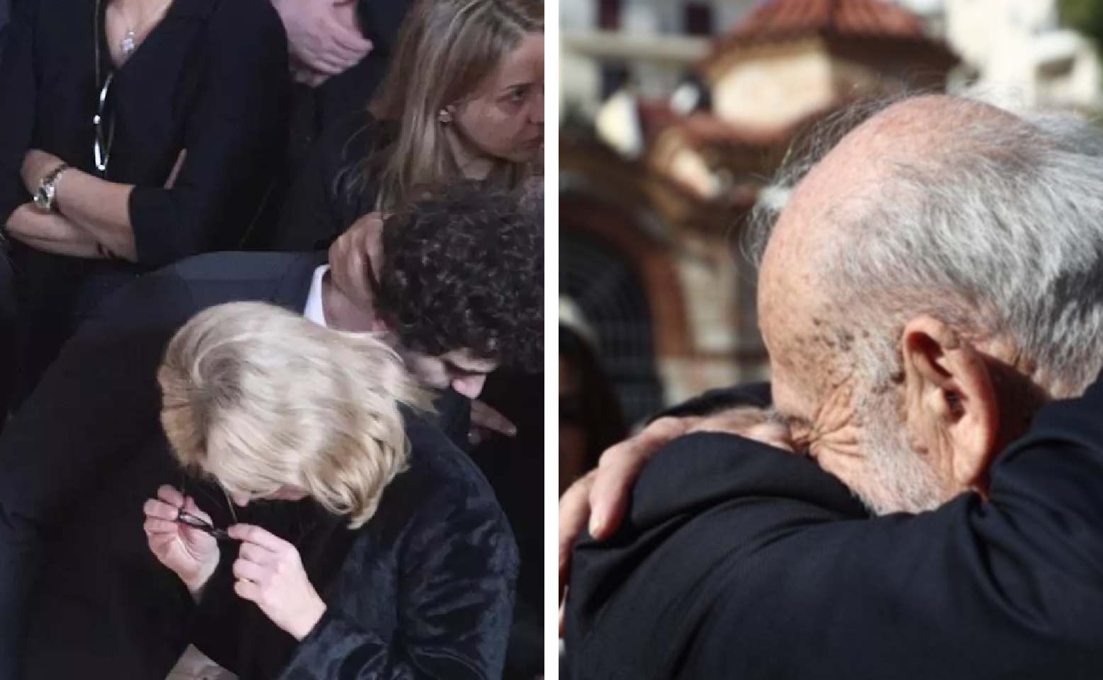 Η Μαρία Παναγοπούλου δεν έκρυψε τα δάκρυά της μέσα στον Ιερό Ναό, ενώ ο Γιώργος Νταλάρας, στενός φίλος της οικογένειας, την αγκάλιασε σφιχτά.