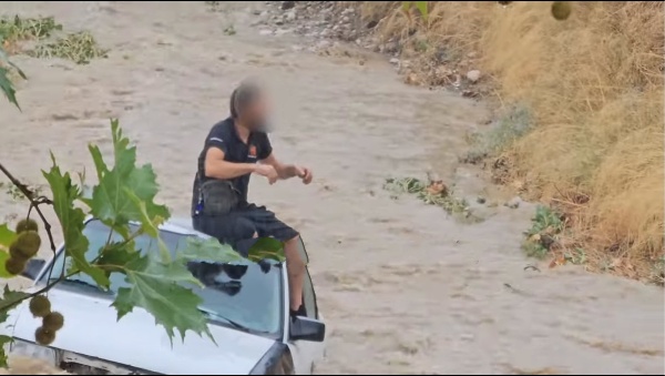 Είχε προηγηθεί καταρρακτώδης βροχή που εξαιτίας της φούσκωσε ο χείμαρρος με αποτέλεσμα να παρασύρει το αυτοκίνητο για αρκετά μέτρα.