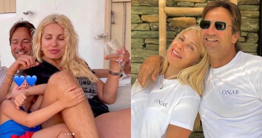 Στην πρώτη φωτογραφία ποζάρει μαζί με τον Μάκη Παντζόπουλο φορώντας μπλούζες “Onar” και στη δεύτερη, μαζί τους είναι και η κόρη τους Μαρίνα, η οποία φοράει και εκείνη μπλούζα Onar και στην πλάτη της γράφει την επαγγελματική ιδιότητά της στο ξενοδοχείο των γονιών της.