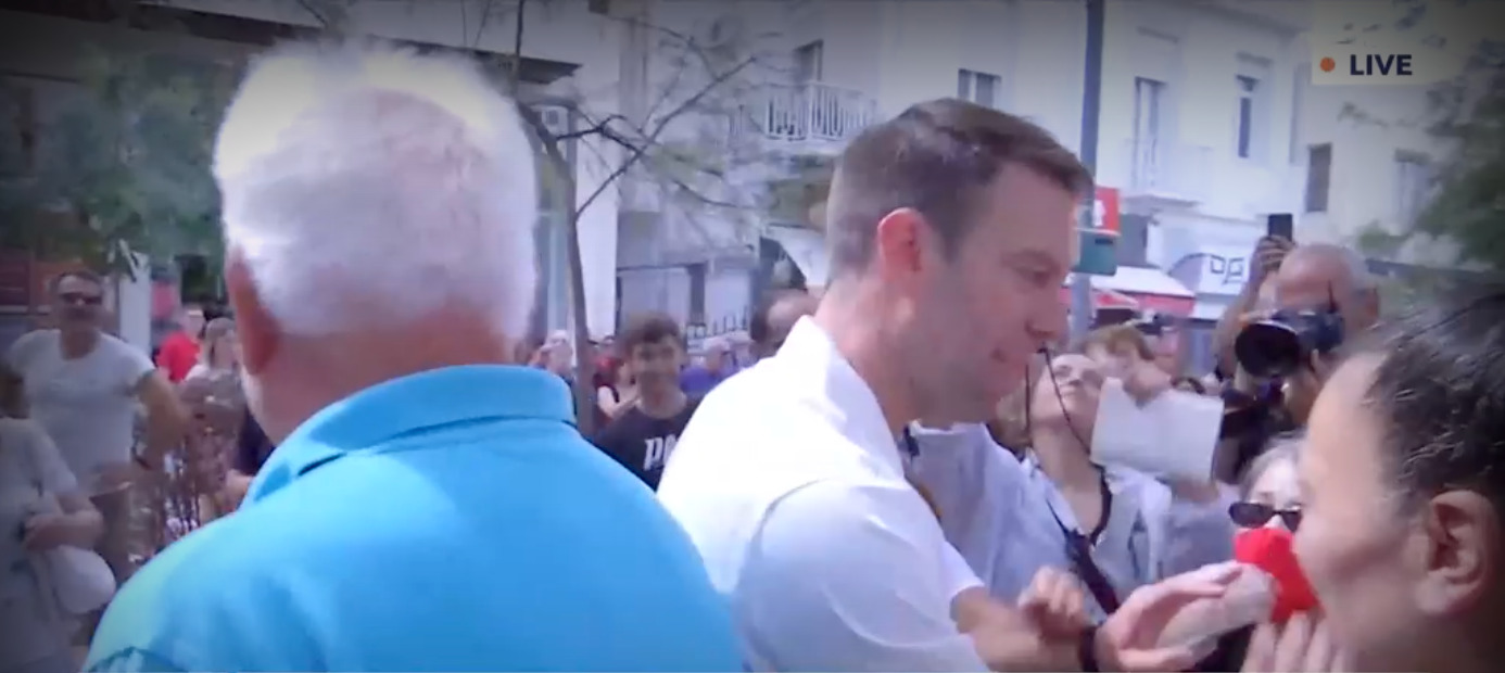 Η αναστάτωση που προκάλεσε ο Στέφανος Κασσελάκης, κατά την άφιξη του στο εκλογικό κέντρο της Νέας Σμύρνης, φαίνεται πως ενόχλησε μερικούς από τους παριστάμενους, με αποτέλεσμα ένας εξ αυτών να απευθυνθεί στον 35χρονο υποψήφιο λέγοντας του ότι έχει μία μέρα που διαφημίζει την είσοδο του.