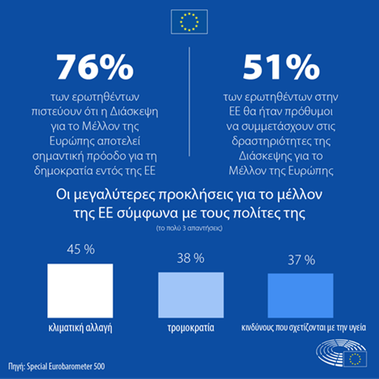 Έρευνα σε επίπεδο ΕΕ δείχνει ότι οι Ευρωπαίοι στηρίζουν την έναρξη της Διάσκεψης για το μέλλον της Ευρώπης.