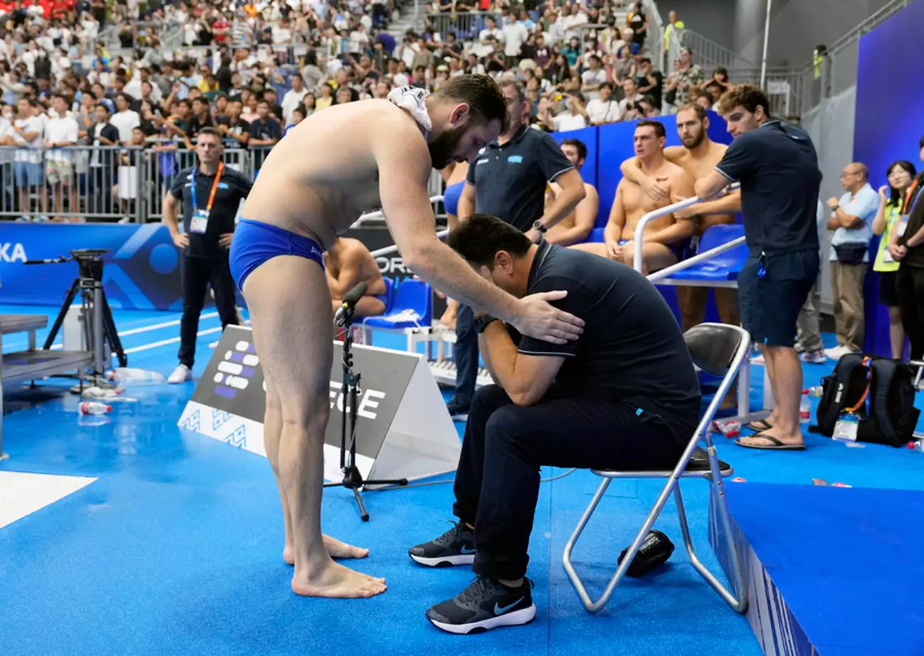 Βαθιά μετανιωμένος εμφανίστηκε ο προπονητής της Εθνικής πόλο, μετά τη λάθος απόφαση, όπως δήλωσε ο ίδιος, να πάρει τάιμ άουτ 37” πριν το φινάλε, με το σκορ στο 10-10 και ενώ η ελληνική ομάδα έκλεψε τη μπάλα και είχε έναν παίκτη παραπάνω. Ο Θοδωρής Βλάχος, μη μπορώντας να συγχωρέσει τον εαυτό του για το στρατηγικό αυτό λάθος του, το οποίο στοίχισε τη νίκη στην ομάδα του, εμφανίστηκε συναισθηματικά φορτισμένος μπροστά στην κάμερα.
