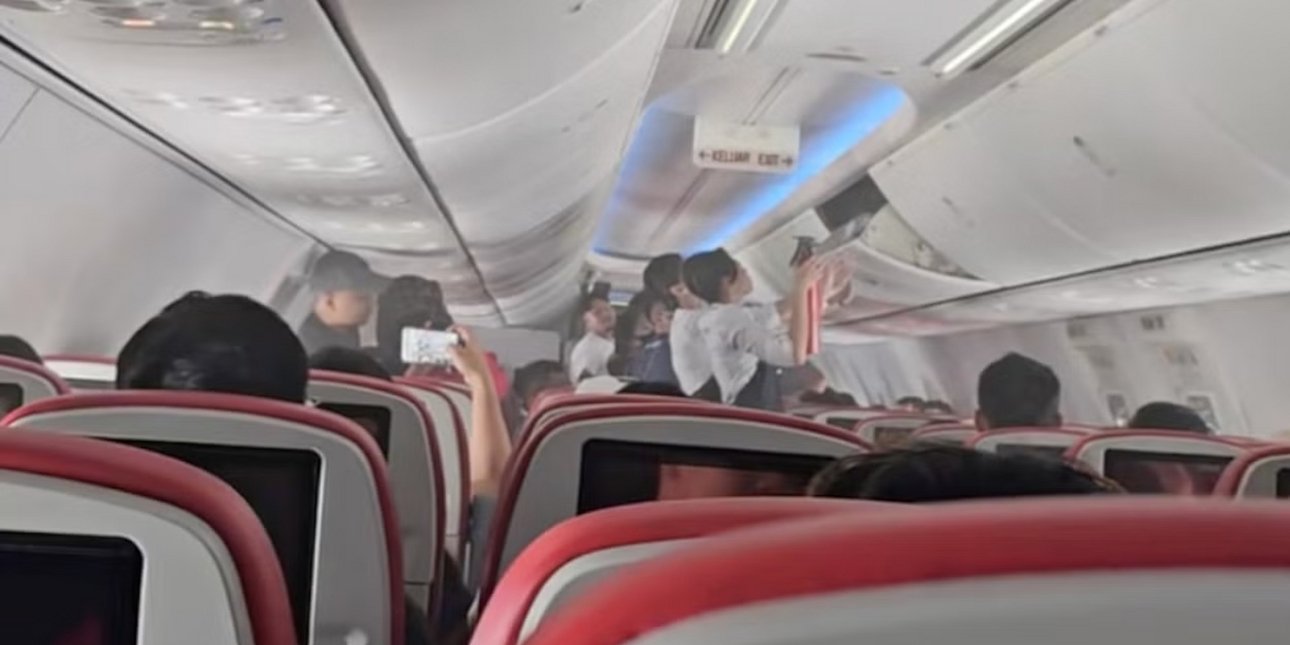 Σε βίντεο που κυκλοφόρησαν στα μέσα κοινωνικής δικτύωσης καταγράφεται καπνός να βγαίνει από τον χώρο αποσκευών πάνω από τις θέσεις και να πλημμυρίζει την καμπίνα.
