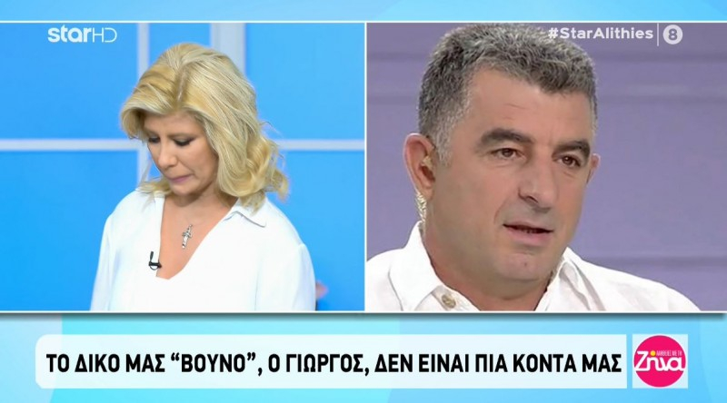 «Καλό, καλό μεσημέρι. Δεν ξέρω τι να σας πω, ξέρω μόνο τι θα μου έλεγε εκείνος. “έλα μωρέ Ζήνα”. Είμαστε εδώ και θα συνεχίσουμε να είμαστε γιατί έτσι θα ήθελε κι εκείνος. Για εμένα ήταν αδερφός, ήταν οικογένεια που όταν την έχασα τη βρήκα. Γιατί όταν λίγοι πίστευαν σε αυτή την εκπομπή εκείνος έβαλε την υπογραφή του, με έγκυρο και αληθινό ρεπορτάζ. Μου άπλωσε το χέρι και μου είπε ότι είμαστε συνοδοιπόροι. Ήρθε χωρίς να σκεφτεί. Η είδηση δυστυχώς βρήκε εμένα. Δεν τα θυμάμαι όλα όσα έγιναν όταν το έμαθα. Πήρα περίπου 70.000 μηνύματα και σας λέω και λίγα. Ήταν μηνύματα αγκαλιάς. Είμαστε η τηλεοπτική οικογένεια του Γιώργου που ο μπαγάσας είχε έναν τρόπο να μας αγκαλιάσει και να μη μπορούμε να σταθούμε όρθιοι. Είμαστε εδώ», είπε μεταξύ άλλων η Ζήνα Κουτσελίνη.