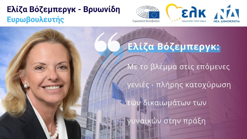 Την ανάγκη ακόμη πιο ισχυρής θωράκισης των δικαιωμάτων των γυναικών λόγω της οικονομικής κρίσης της περασμένης δεκαετίας αλλά και της παρούσας πανδημίας, υπογράμμισε η Ευρωβουλευτής της Νέας Δημοκρατίας και του Ε.Λ.Κ. και Αντιπρόεδρος της Επιτροπής του Ευρωπαϊκού Κοινοβουλίου για την Ισότητα των Φύλων, κυρία ΕλίζαΒόζεμπεργκ – Βρυωνίδη, με παρέμβαση στην Ολομέλεια του Σώματος σχετικά με την 25η επέτειο της Διακήρυξης του Πεκίνου και της Πλατφόρμας Δράσης του ΟΗΕ για τα Δικαιώματα των Γυναικών.